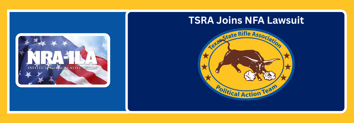 TSRA was originally approached by the NRA Institute for Legislative Action (NRA-ILA) to aid in securing plaintiffs for this suit, but through meetings, research, and consideration for TSRA Members, it was decided to join as an organizational plaintiff. Together with three individual plaintiffs and three other organizational plaintiffs, TSRA is now named in this case. We are dedicating our time and information to this matter on behalf of our thousands of members, our long-standing organization, and all law-abiding Texans.